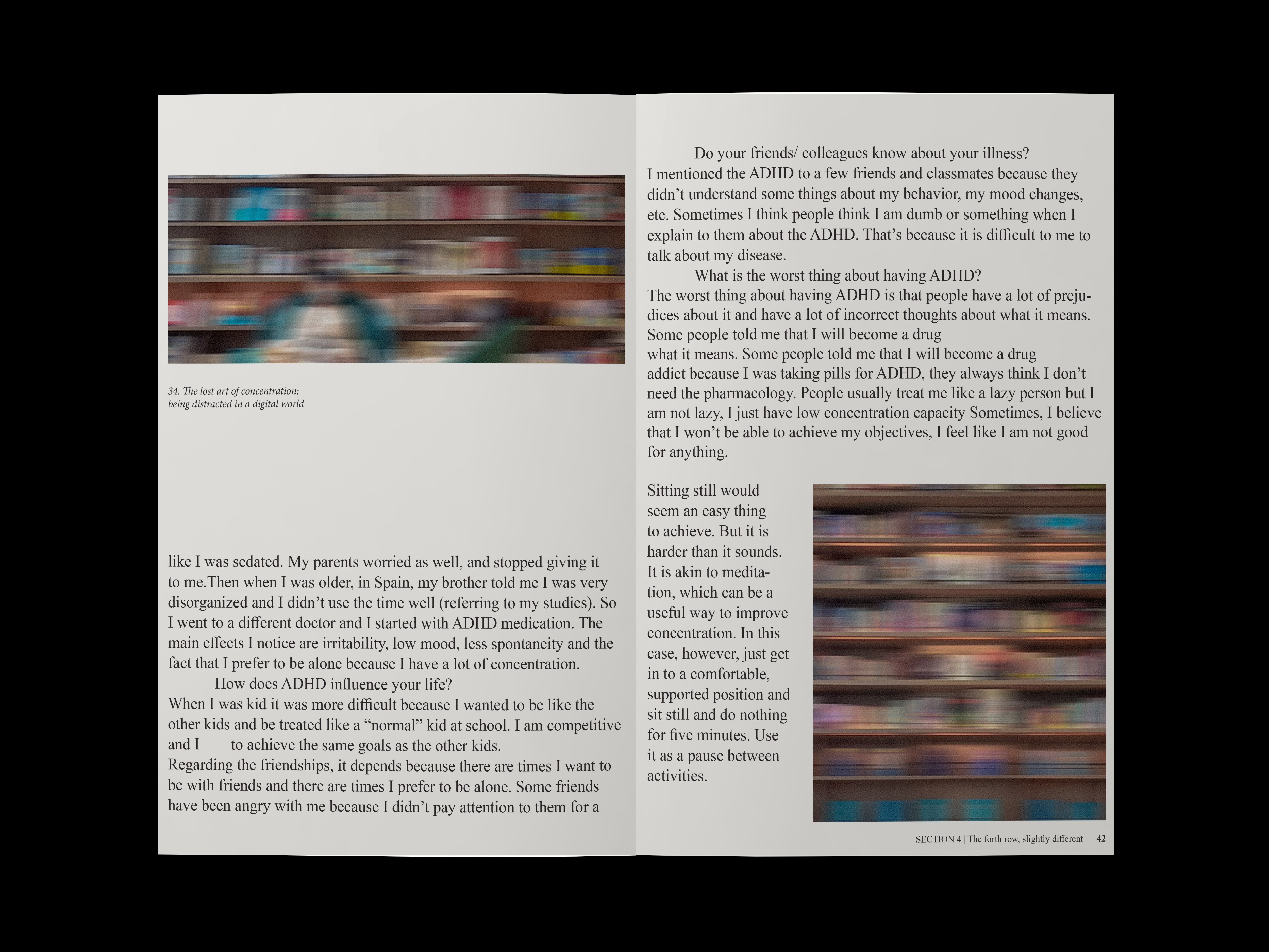 "The different sections" is part of a self-study project that involved the creation of various publications, each taking on different forms and serving distinct purposes.